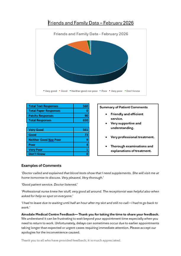 Friends and Family data for February 2026.